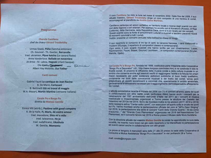 Voyage à Turin à l’invitation de la chorale « Po e Borgo ». Merci à eux pour leur accueil et la visite de cette ville magnifique! Concert dans la superbe église di san Dalmazzo.